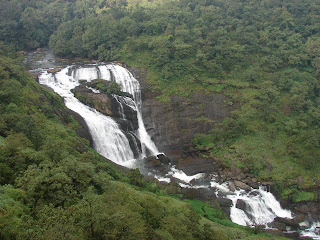 We reach the falls, it was full. We thought of crossing the top of this falls rather than walking back 3km. After crossing the river, we had our breakfast on the bank. We spent some time here to figure-out the route. After some struggle through itching leaves, we got the path which took us to the road. By around 2pm we reached the check point, after convincing the forest security(since official time to trek is within 11.30am and they are not supposed to allow people after this time)and paying them Rs.115 per head as entry fee we started. Around 100mtrs from there was river, we thought of having our lunch here. But it rained badly, delaying our trek by an hour or so. So we started trekking at 4pm, but the forest guards had a different dialogs this time. So we started with a brisk pace.